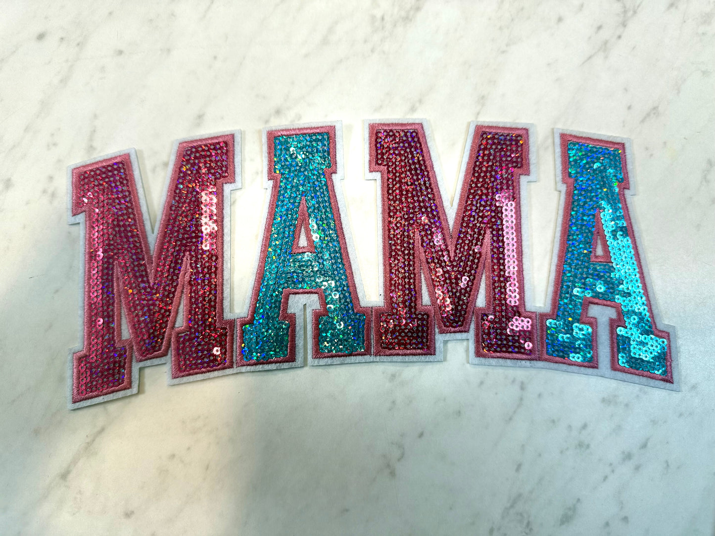 Mama pink Teal Sequin Patch